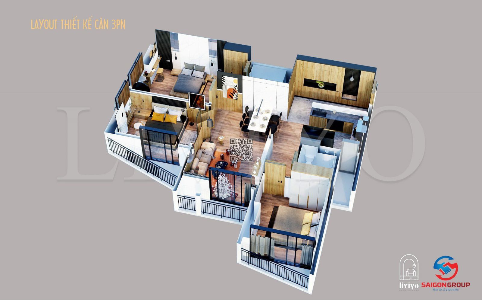 Căn 3 ngủ 2 vệ sinh diện tích : 85m2, 99m2, 106m2