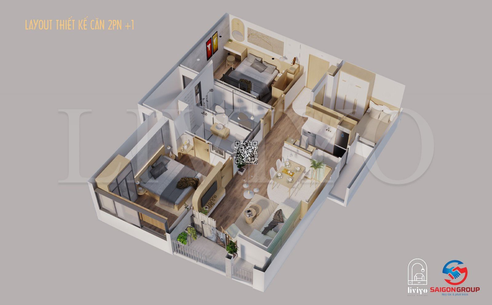 Căn 2 ngủ 2 vệ sinh : 64m2, 66m2, 77m2, 82m2
